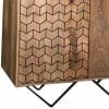 This Niveli Abstract Light Mango Bar Cabinet is one-of-a-kind with its dark abstract arrow pattern on the light mango wood doors, it is perfect for adding a touch of glamour and luxury to any home bar, dining room or living room. This light wooden bar cabinet is a beautiful piece of bar furniture and features two doors, gold metal feet, and plenty of internal storage space for all of your barware and accessories. Plus, the sleek black finish makes it easy to match with any décor.